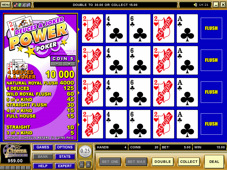 Card, Sic Bo, Slots, Progressive, Video Poker. |