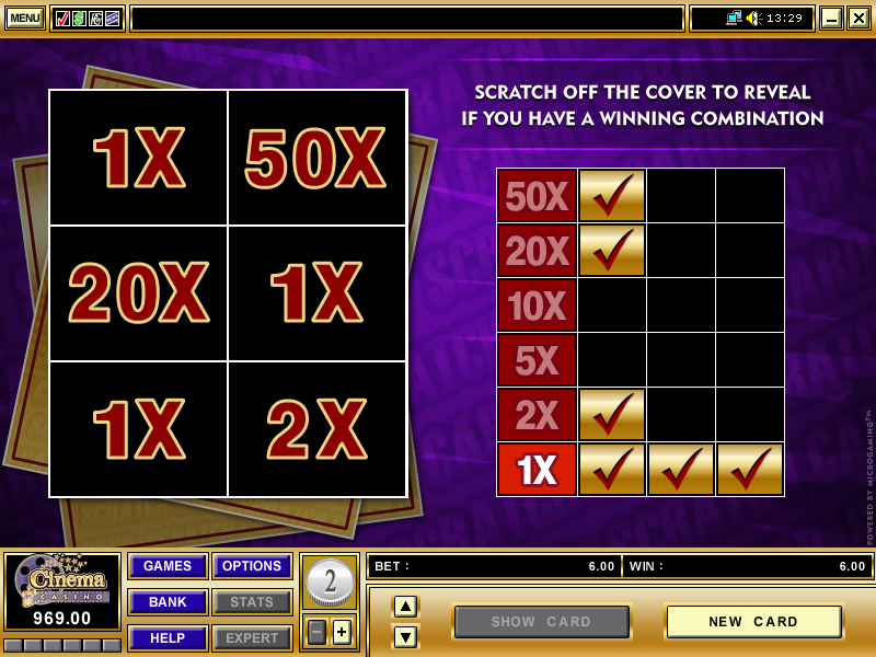Blackjack, Craps, Cyberstud Poker, Keno, Roulette, Scratch