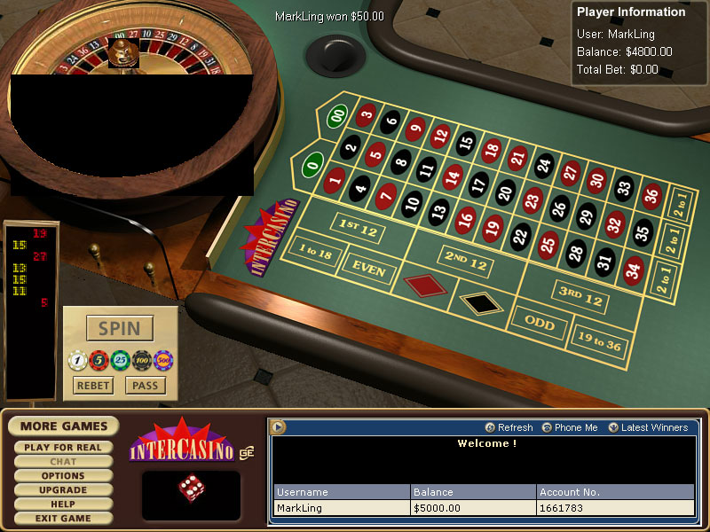 Craps, Roulette(American,European), Red Dog, Poker, Lottery