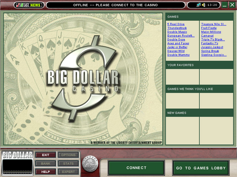 Blackjack, Craps, Cyberstud Poker, Flip Card, Slots, Progressive,