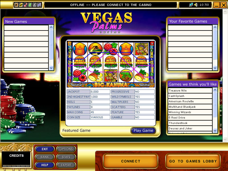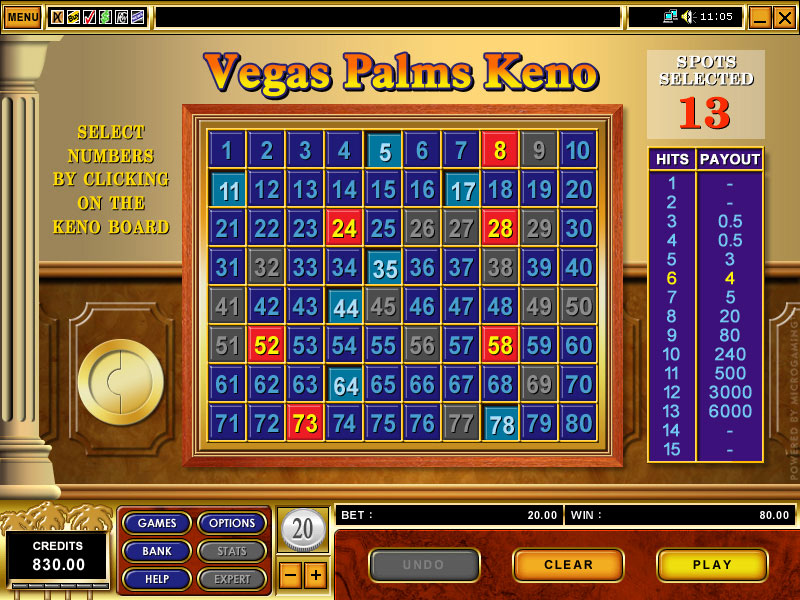 Blackjack, Baccarat, Poker, Craps, Cyberstud Poker, Keno,